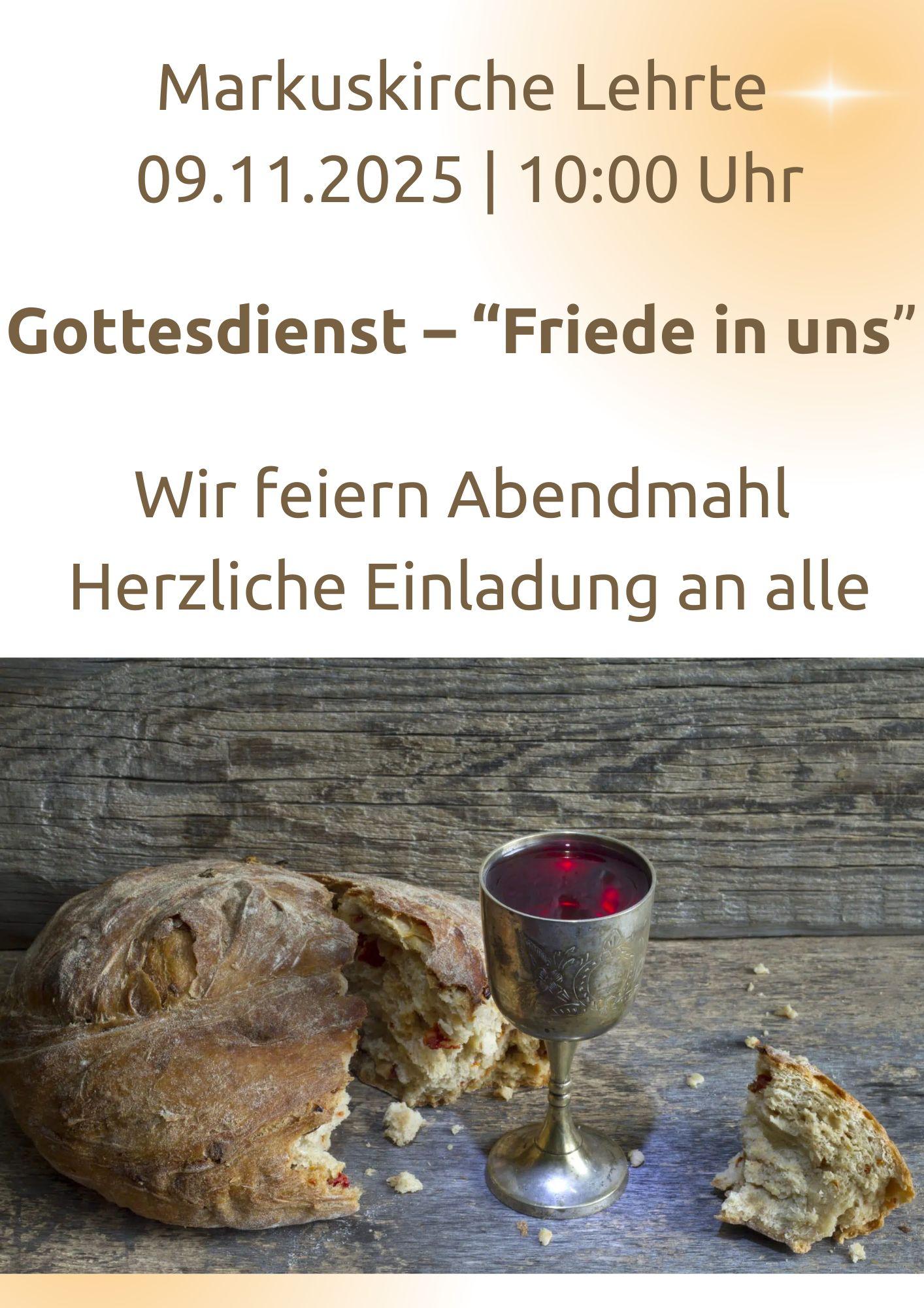Am Sonntag, den 09.11.25 um 10 Uhr in der Markuskirche ⛪ feiern wir den nächsten Gottesdienst. An einem geschichtsträchtigen Tag werden sich unsere Prädikantin Dorothea Jahns und die Gemeinde mit dem Thema "Friedensethik" auseinandersetzen. Alle sind herzlich eingeladen, gemeinsam das Abendmahl zu feiern.
